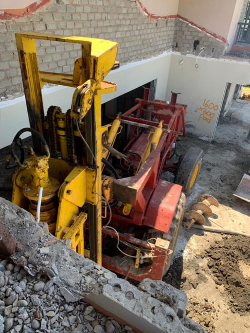 Installation of 8 limited headroom CFA piles between 250mm and 500mm in diameter.