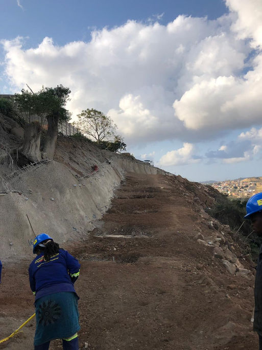 This was achieved by installing over 180 anchors, drilled to various depths in the rock, 90 gabion anchors and approx. 670m2 of welded mesh reinforced shotcrete and geocomposite band drains.